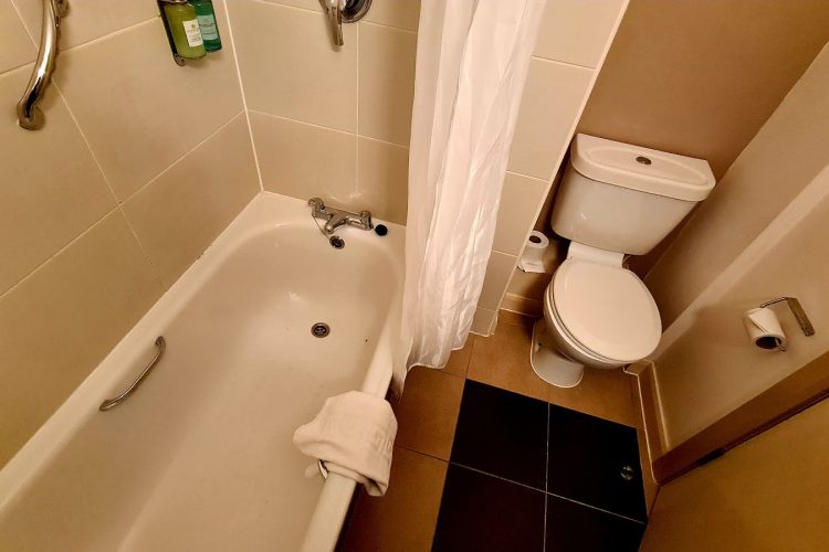 The room felt quite dated and could have done with a lamp or ceiling lights for better illumination, but was alright. As the room was fully accessible, there was an automatic door, though I did notice that the deadlock didn't work on it (which would have been nice). There was also a large wet room, which wasn't ideal for me as the whenever I used the shower, the spray soaked the entire floor even with the curtain closed. I'd have also appreciated shelving to put toiletries as the sink was quite small.