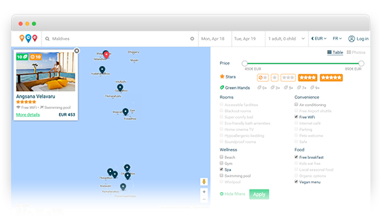 Oavsett om du letar efter en slick city break, längtar längs stranden eller vill gå till bergen för att gå vilse i naturen, har vi något för dig. Vår interaktiva karta och sofistikerade filter gör att du kan välja det perfekta miljövänliga logi för dig.